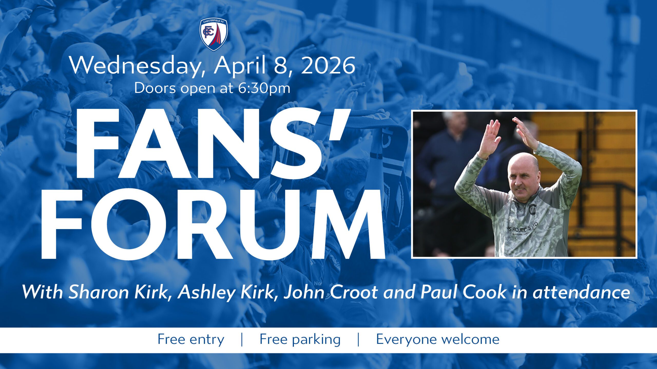 This evening’s Fans’ Forum event sees Paul Cook, Sharon Kirk, Ashley Kirk and John Croot address and take questions from supporters at the SMH Group Stadium.