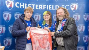 Representatives of Drillwell Ltd are pictured below, receiving a signed shirt from James Berry, who was named Man of the Match.