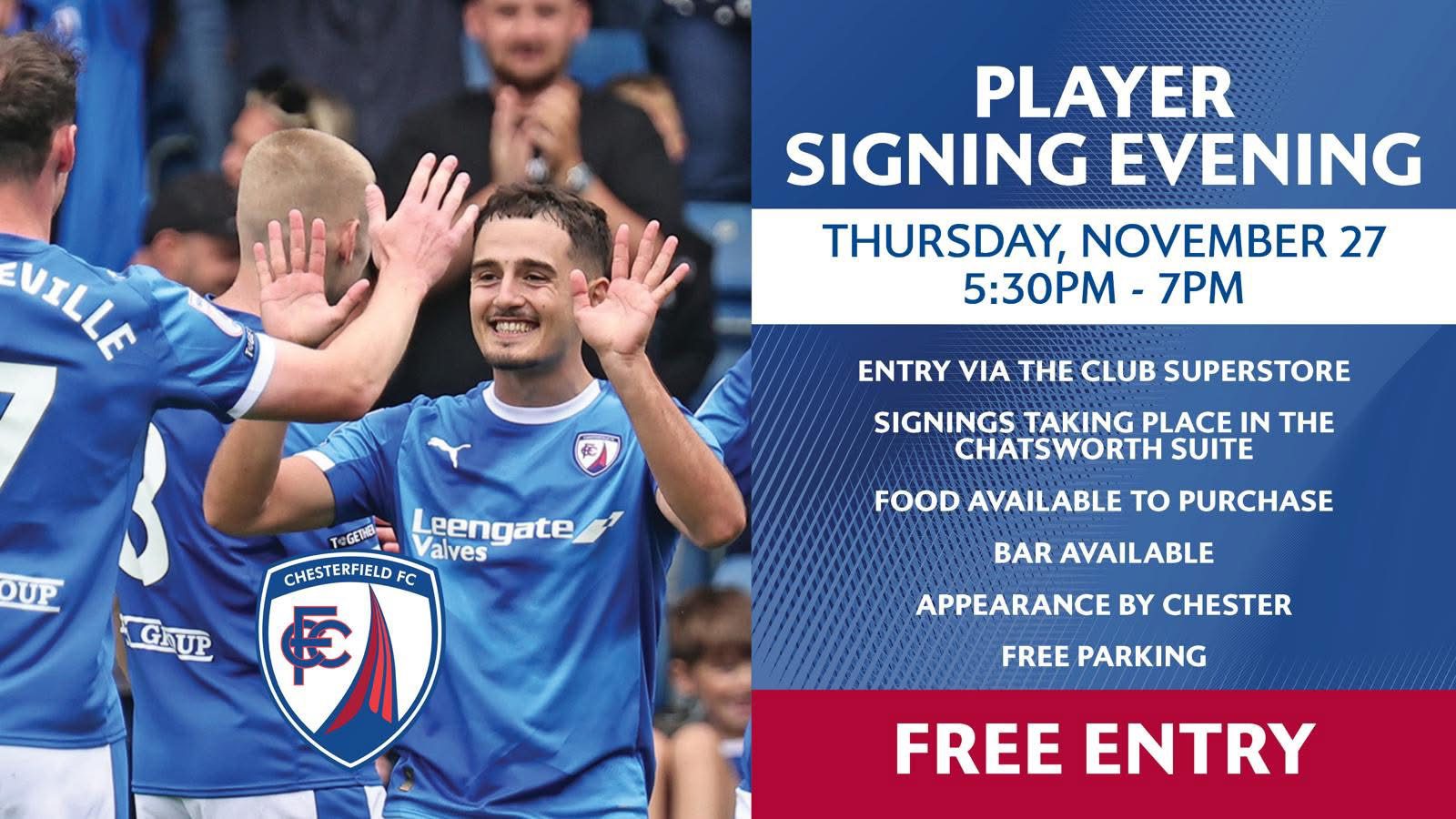 There is a player signing evening at the stadium tonight (Thursday), starting at 5.30pm.
