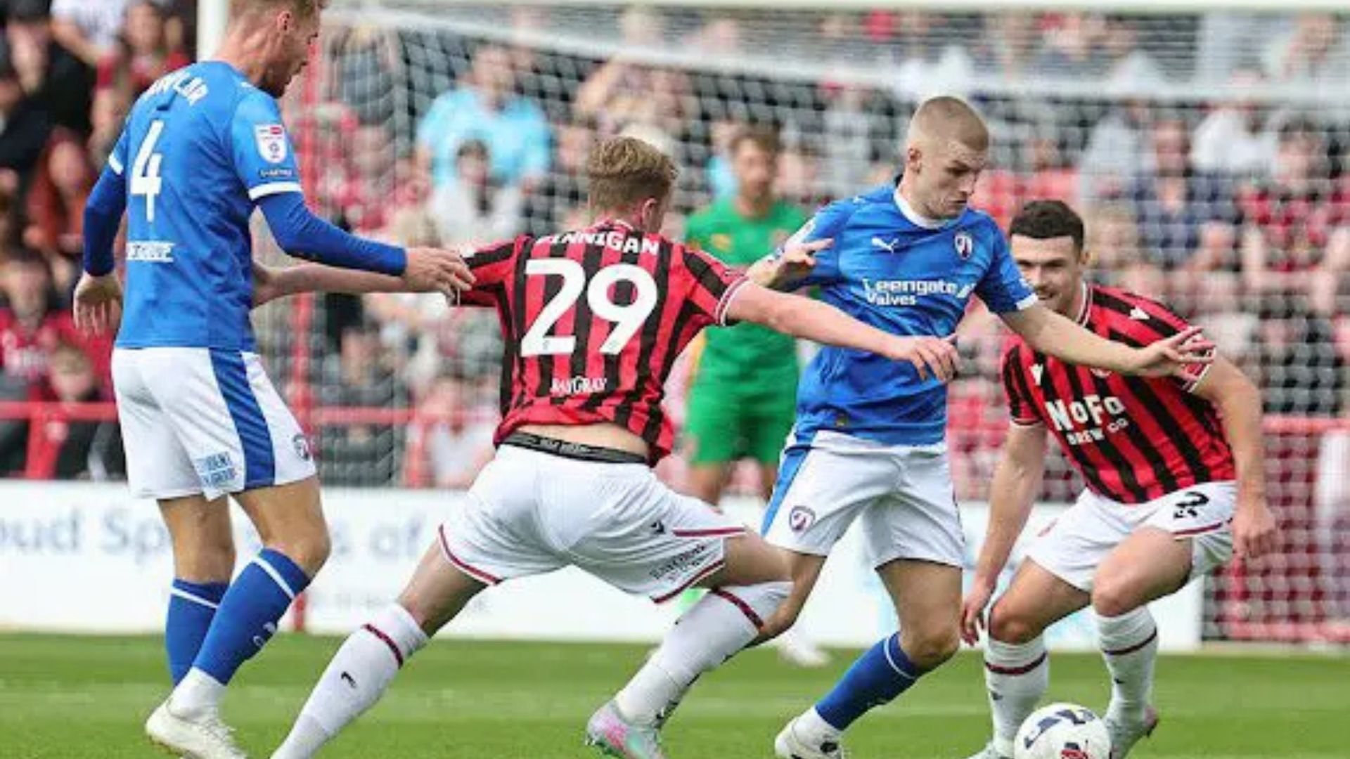 Connor Barrett picked up a yellow after Lewis Gordon was hurt while several players challenged for the loose ball.