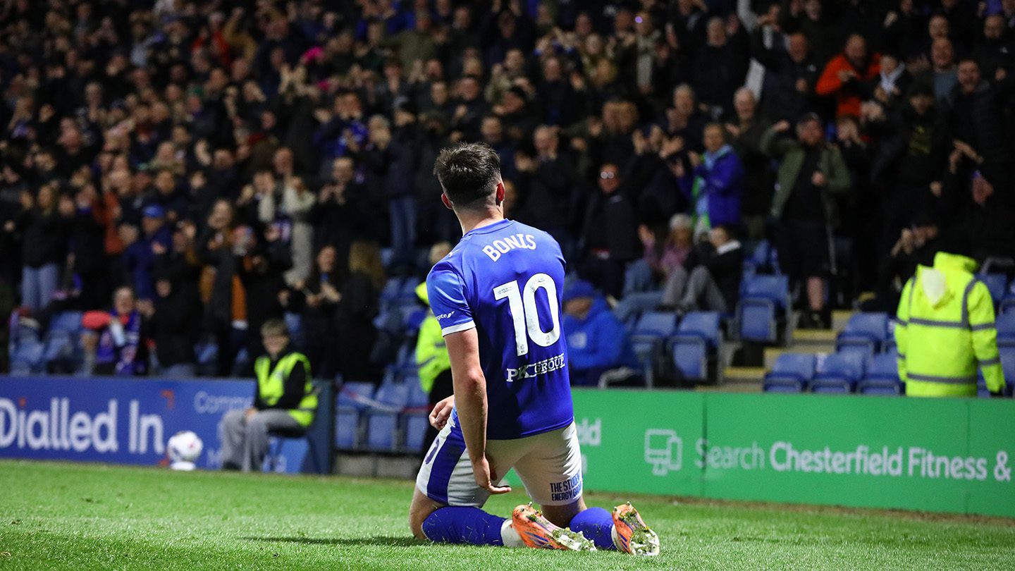 But the second 45 was dominated by Chesterfield with very little threat from our chasers. Bonis and Ryan Stirk rattled the woodwork, as did the visitors on one occasion with a header from Andy Cook, in what was a controlled show, only for sub Janoi Donacien to give the referee a stoppage time decision to make, and his decision making before that had been somewhat unpredictable,